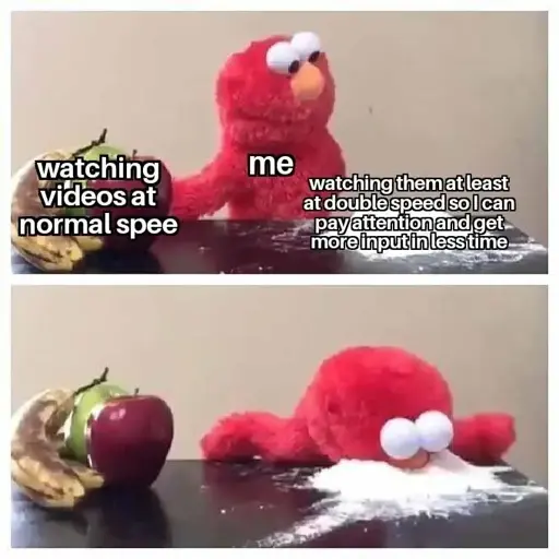 minus-squareSabata@ani.sociallinkfedilinkEnglisharrow-up3·6 hours agoAnything above 2x is me ignoring the audio and just reading the subtitles.