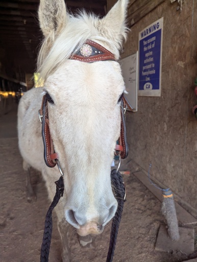 I know a lot of people who were just thrown on horses like that as kids. I have always ridden with a saddle and a helmet, but I was thrown on horses as a kid that I def should not have been on lmao. All green as hell except for my mare. My childhood mare was an old white Arabian that was a chubbier version of Sandy. Same attitude and coat pattern lol. She and I were going to do competitive barrel racing. She knew the pattern herself, so all I had to do was get on and say “let’s go” and she’d go through the barrel pattern on her own as fast as she could. All I had to do was hold on. She colicked before we could start racing for real, though.