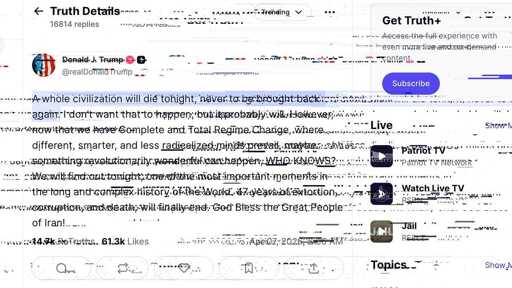 Even if playing along this fucking farce of “just” a “bargaining tactic” (instead of accurately representing it as commitment to war crimes), and even if we brush off all moral standards (we should not), that’s still bloody stupid. He’s making sure the Iranian population gets as motivated as possible to resist, while the United-Statian population resists against any sort of war effort. He’s shooting his own