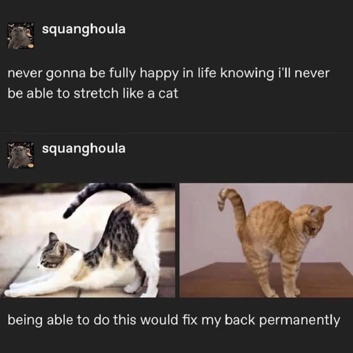 But yeah, if you ignore those safety instructions, what you can do, is to slowly move your back into the position that the right cat is in (while on your knees and hands). Then slowly arch your back into the other direction. At some point, you might hear a pop, as the joint regains its ability to move and then that’s that.