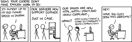 Megan: Our pages are now HTML, XHTML-Strict, and Haiku-compliant.