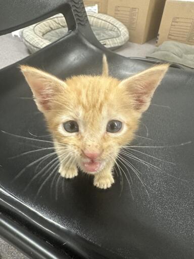 My son was at the flea market Friday and someone had a box of kittens. He texted to ask if he could have one and while waiting for a reply he was holding one. The guy with the box walked off leaving my son and someone else with a kitten. Vet says he is 4 weeks old, not even fully weaned.