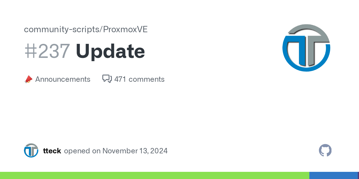 The project has been transferred to the community earlier so the Proxmox Helper Scripts as TTeck’s legacy will live on.