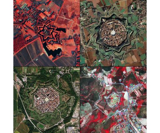 Palmanova, which lies in the Friuli-Venezia Giulia region in northeast Italy, is listed as a UNESCO World Heritage site. Built by the Venetians to defend the Republic’s northeast border, it is a quintessential example of a Renaissance star fortress and is one of the largest and best preserved geometric towns. Palmanova’s radial design extends from a central hexagonal square, the ‘Piazza del Duomo’, with concentric rings crossed by straight avenues. This internal area is surrounded by a star-shaped double perimeter of fortifications.Almeida, Portugal