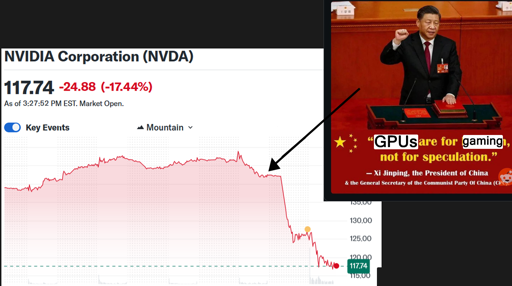 But surprise! China pops up with its own AI and shit hits the fan. It probably won’t last though, but I ain’t buying nvda anymore. Not with their CEO falling in line with every other techno fascists.