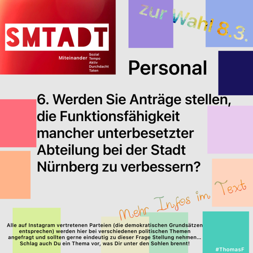 Feuchti68@discuss.tchncs.de to politics @lemmy.worldDeutsch · 7 hours agoPersonal ( zur Wahl Nürnberg )plus-squarediscuss.tchncs.deimagemessage-square0fedilinkarrow-up11arrow-down17