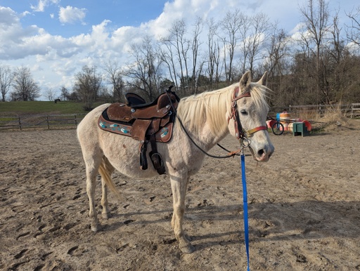 To get her prepped, I’m gonna get her used to being tacked and do ground worked while tacked up. Once she’s good with that, I have a couple of horse trainer buddies who are going to hop on her first just to get a feel for how much she remembers.