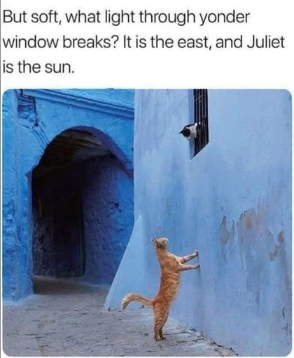 Secret Music 🎵 [they/them]@crazypeople.online to cats@lemmy.worldEnglish · 6 months agoWherefore art thou Romeow?crazypeople.onlineimagemessage-square1fedilinkarrow-up1264arrow-down13