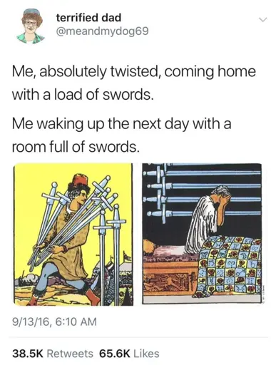Waite-Smith deck. I don’t know why we’re giving credit to the publisher of the deck and erasing the queer woman of color who did the artwork. Oh, wait…